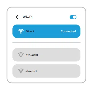 ۲. ابتدا اینترنت سیم کارت گوشی خود را خاموش کنید. سپس WiFi گوشی همراه را روشن و از لیست وای فای، اسم “Direct” را انتخاب و متصل میشویم.