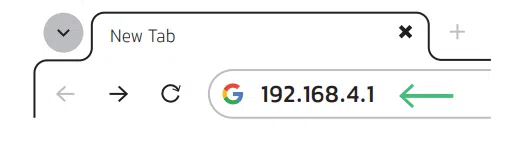 ۳. سپس به کمک یک مرورگر در تلفن همراه خود (chrome یا safari) آدرس آی پی که بر روی صفحه نمایشگر دستگاه قابل مشاهده است 192.168.4.1 را با اعداد انگلیسی تایپ و سپس جستجو کنید.
