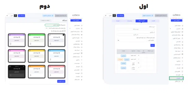 ۷. جهت تنظیم نام فروشگاه، تم و مدت زمان روشن ماندن صفحه نمایشگر همچنین فعال یا غیر فعال بودن صدای بوق دستگاه، ابتدا وارد پنل کاربری خود شده و در قسمت “تنظیمات” وارد سربرگ افزودن دستگاه شوید.